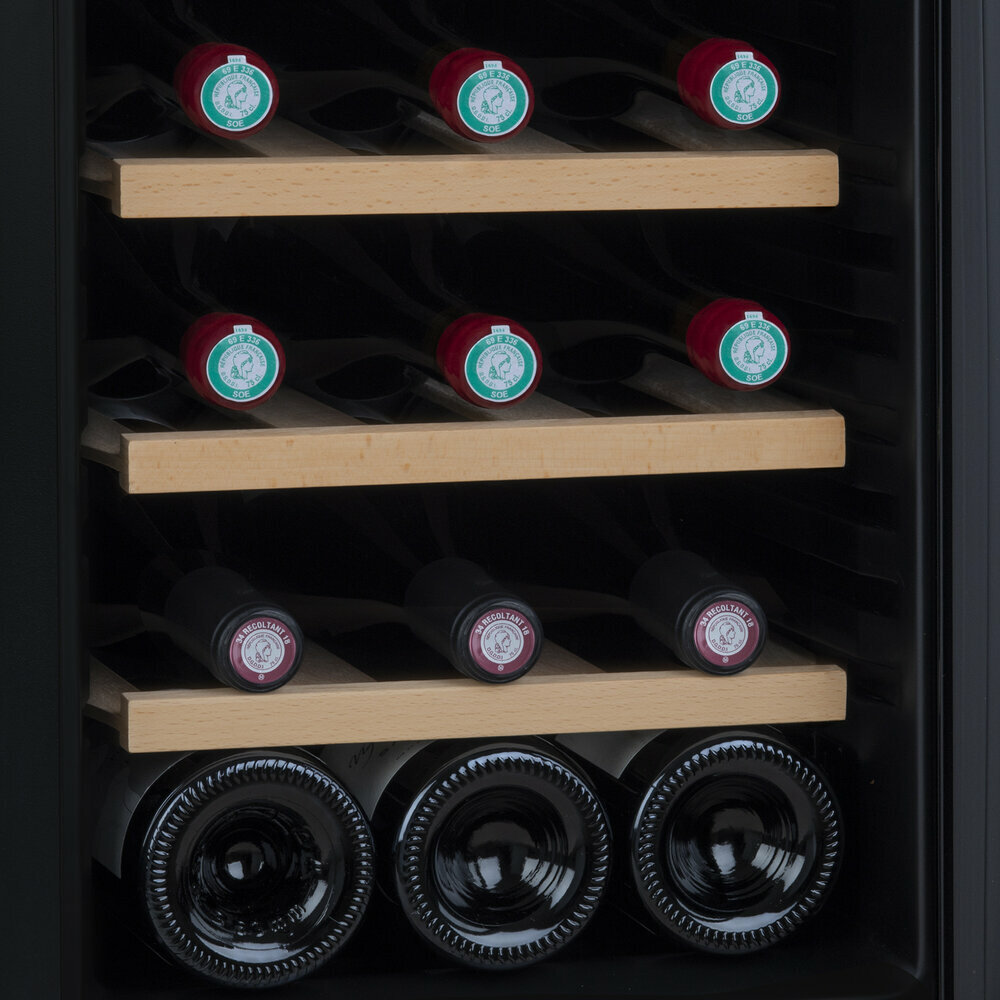 Sa vitre teintée ainsi que son éclairage LED vous permet de voir vos bouteilles tout en les gardant